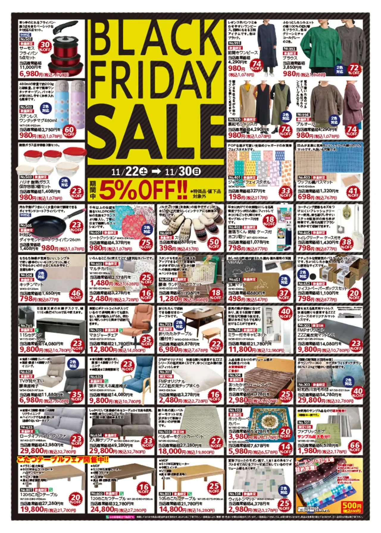 チラシに掲載の無い商品も、今ならほぼ全品、5%OFF!